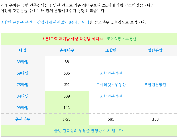 초읍1구역 재개발 현재 타입별 세대수 입니다.