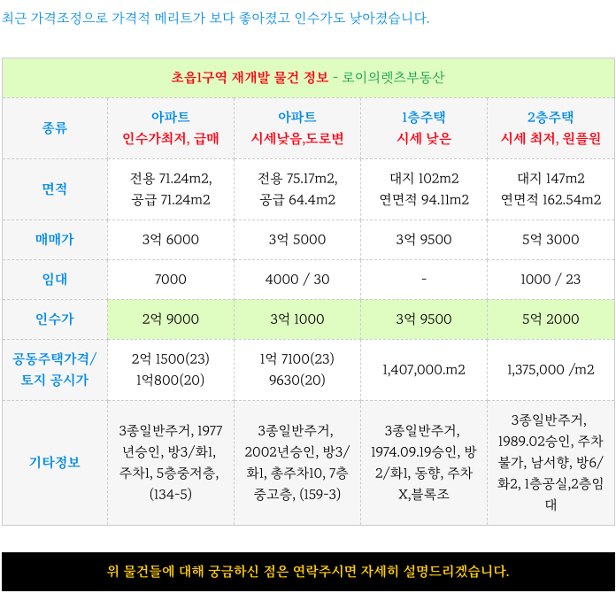 초읍1구역 재개발의 현 가능하고 시세보다 낮은 물건들 업데이트 하여 드리겠습니다.