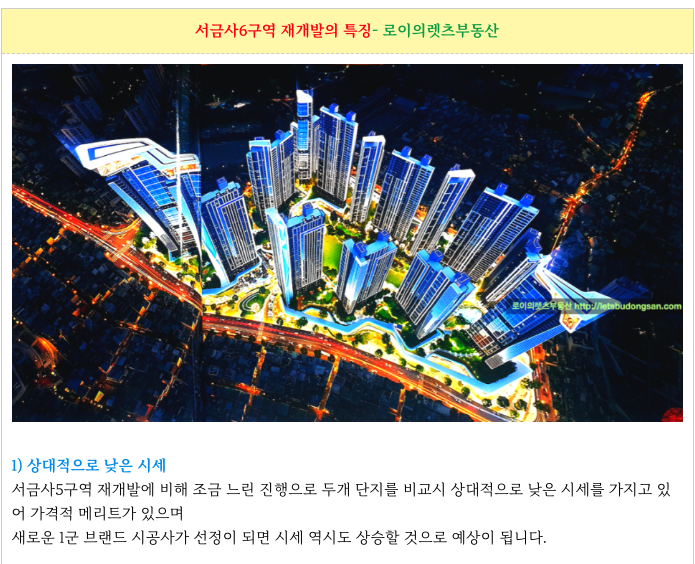 서금사6구역 재개발의 특징을 간략히 정리하였습니다.