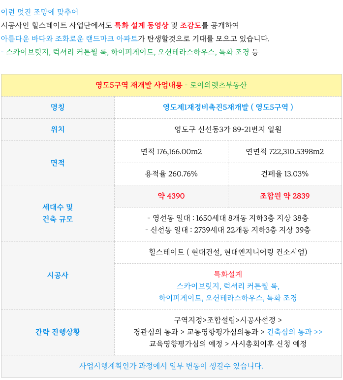 영도5구역 재개발의 진행상황과 향후 예상일정 정리등 추가정보는 아래 페이지를 참고 부탁드립니다.