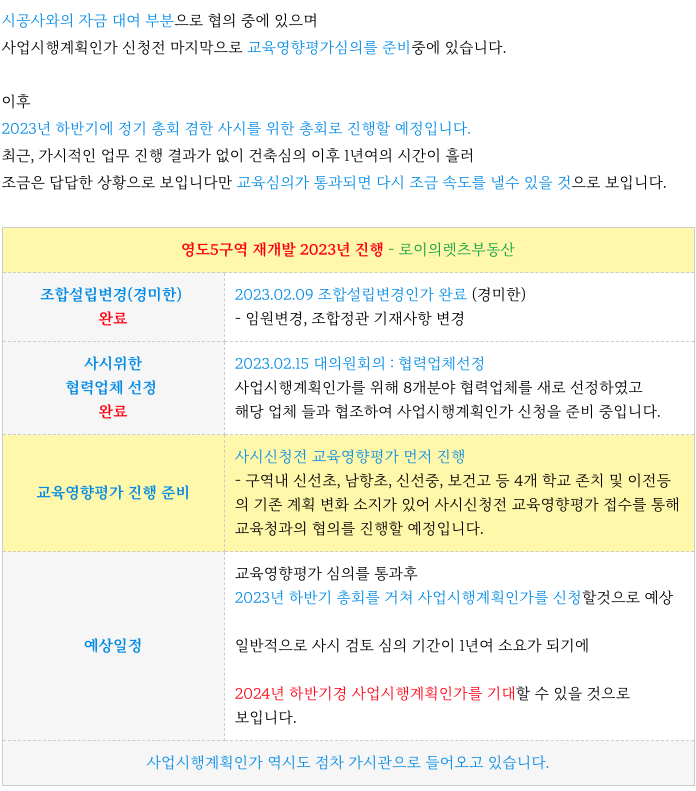 영도5구역 재개발은 하반기 사시신청을 목표로 하고 있습니다.