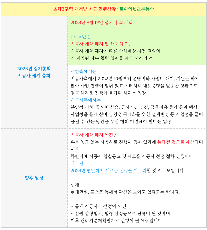 조합측에서는 8월 19일 2023년 정기총회를 열어 시공사 해지 안건을 통과 시킬 예정입니다.