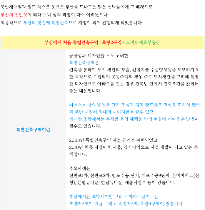 초량2구역 재개발 은 주거단지로 부산의 첫 특별건축구역 입니다.