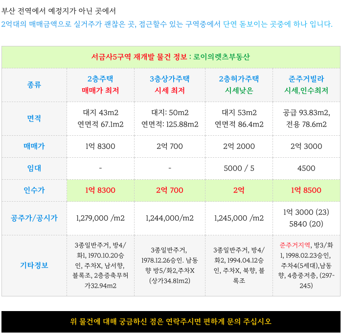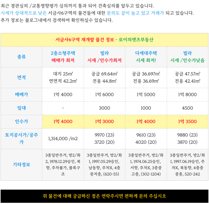 서금사6구역 재개발 소액 물건 정보 역시 함께 소개해 드리겠습니다.