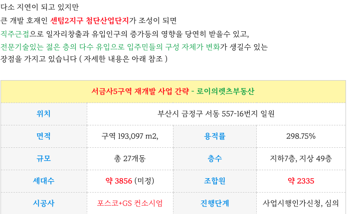 서금사5구역 재개발의 특징을 다시 한번 정리해 드립니다.