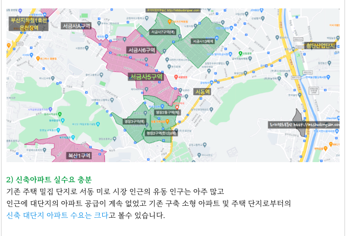 바로 마주보고 있는 서금사5구역, 6구역 재개발만으로도