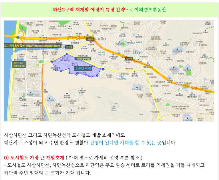 하단2구역 재개발의 간략한 특징 정리하여 소개 드립니다.