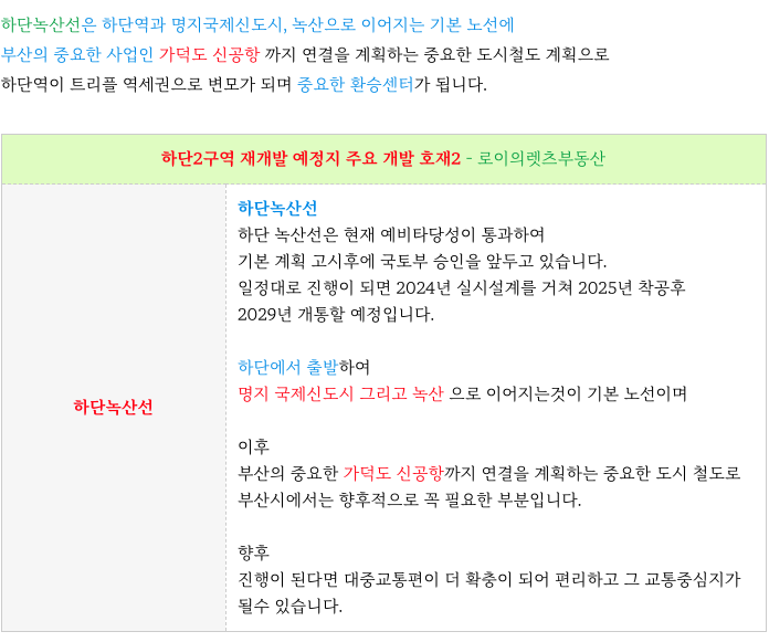 2) 하단녹산선 : 도시철도 개발호재