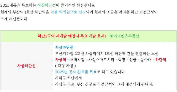 1) 사상하단선 : 도시철도 개발호재