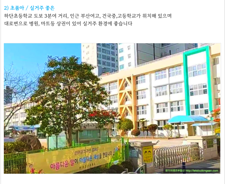 하단초등학교가 5분여 도보 거리에 있고