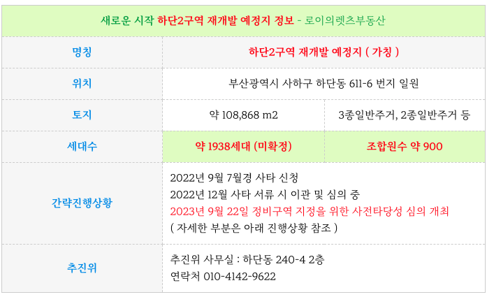 개발호재 품은 하단2구역 재개발 예정지 사전타당섬 심의 일정과 소액 토지 등 매물 정보 소개하여 드리겠습니다.