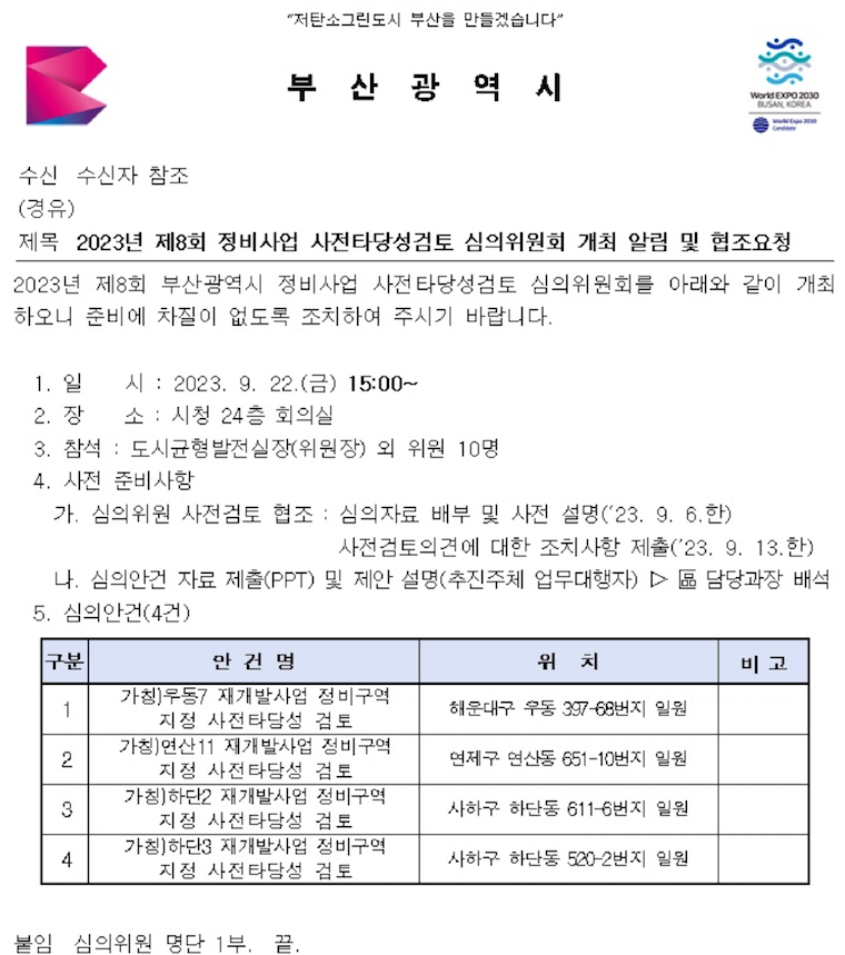 2022년 9월 정비구역 지정을 위한 사전타당성 심의를 신청하였고