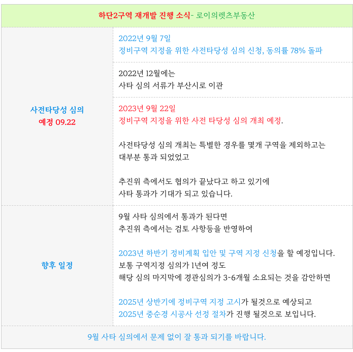 사타심의(09/22) - 하단2구역 재개발 일정과 소액 토지 등 매물 정보