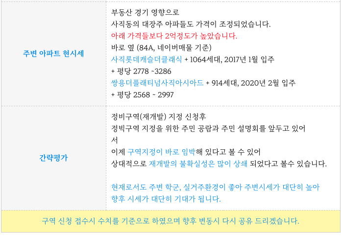 입지좋은 사직3구역 재개발 공람공고 완료 소식과 최저 소액 매물 (1.5 인수 )