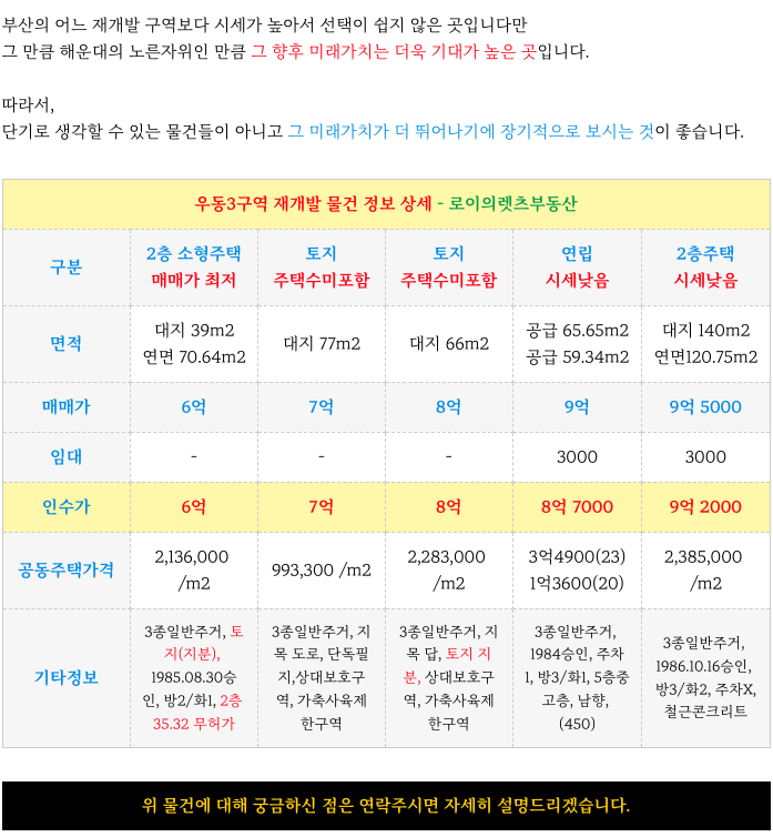 우동3구역 재개발 최저 매물 부터 소개 해 드리겠습니다.