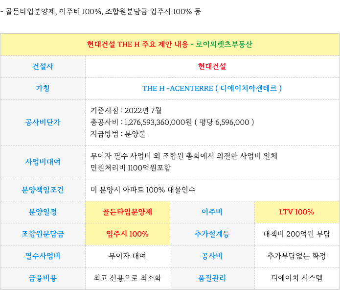 우동3구역 재개발의 시공사 현대건설 ( THE H ) 의 제안 내용 입니다.