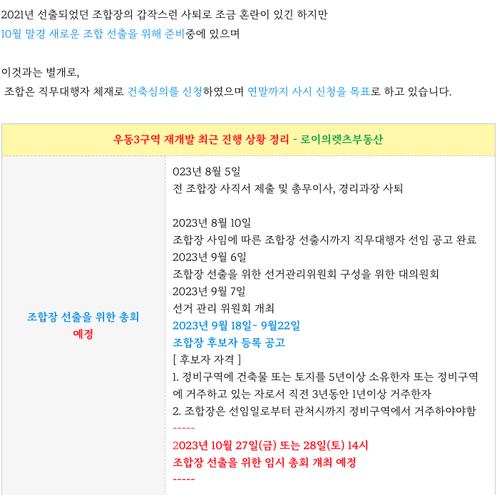 해운대 우동3구역 재개발의 현재까지 진행상황 정리등 추가 정보는 아래 페이지를 참고 부탁드립니다.