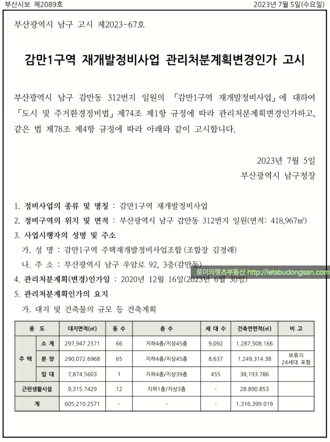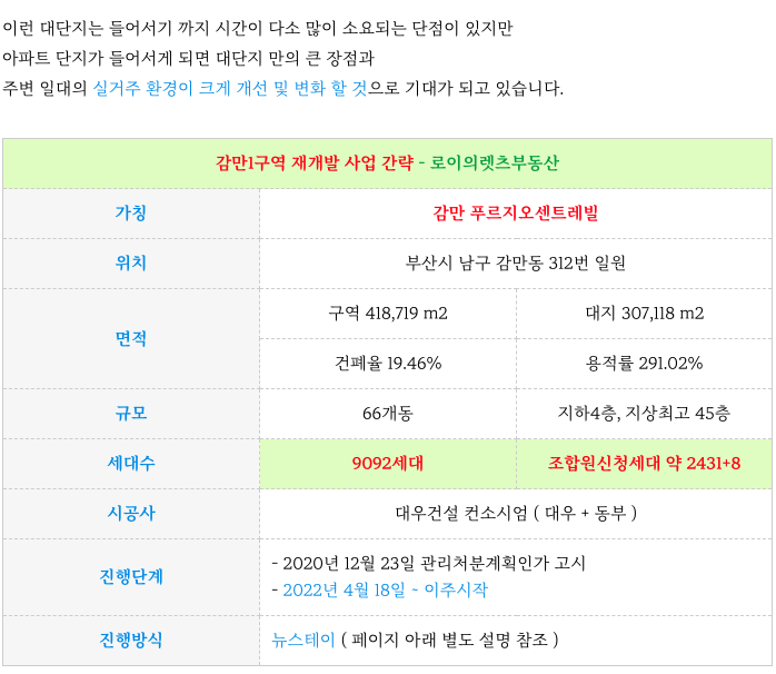 감만1구역 재개발의 진행부분 정리등 추가 정보는 아래 페이지를 참고 부탁드립니다.