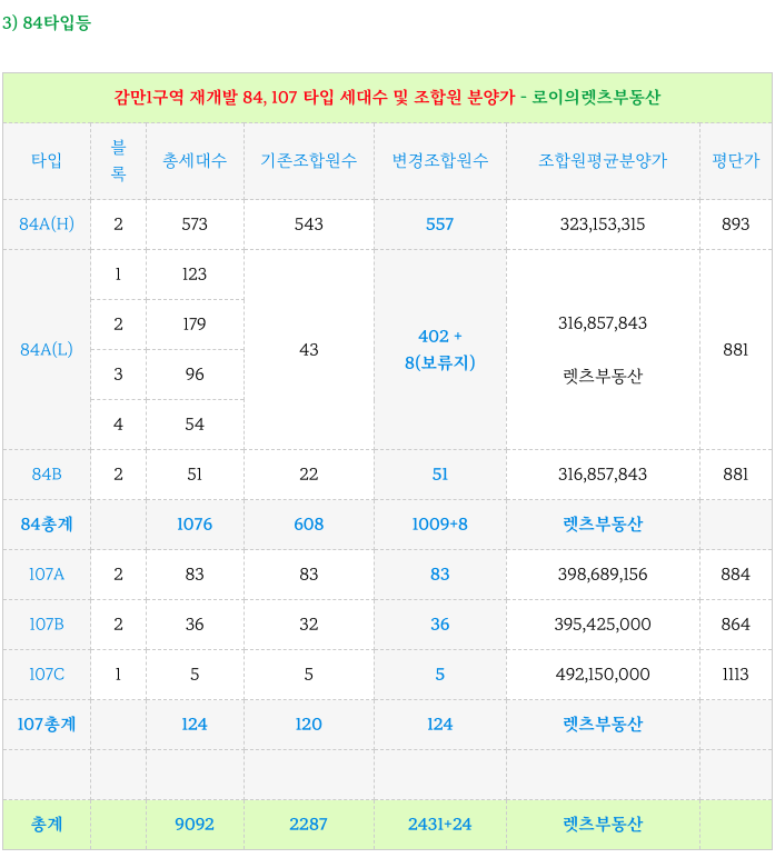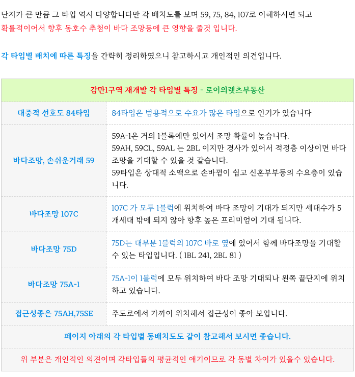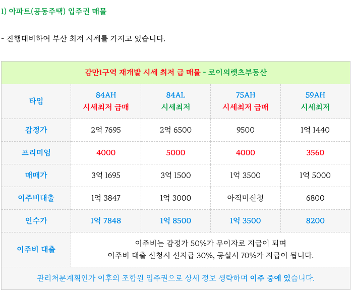 감만1구역 재개발 타입별 최저 입주권 매물들을 소개해 드리겠습니다.