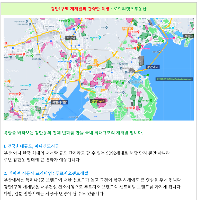 감만1구역 재개발의 특징을 다시 한번 간략히 정리드리겠습니다.