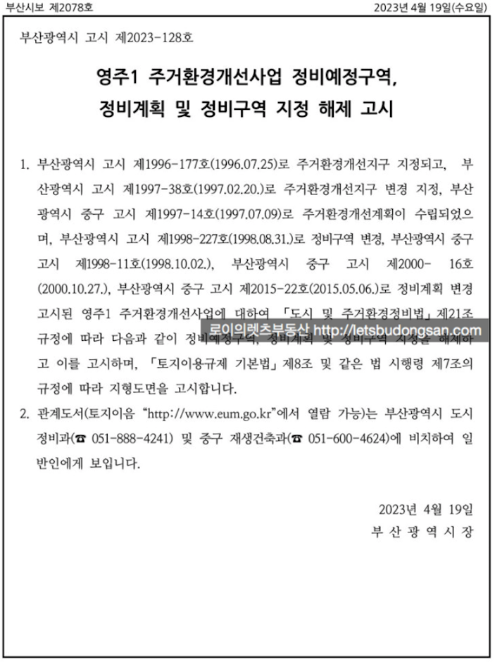 지난 4월 구역내에 있던 영주1주거환경개선지구가 해지 이후