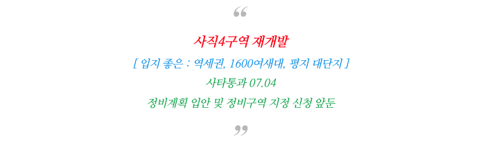 입지좋은 - 사직4구역 재개발 : 진행상황 현 소액 매물