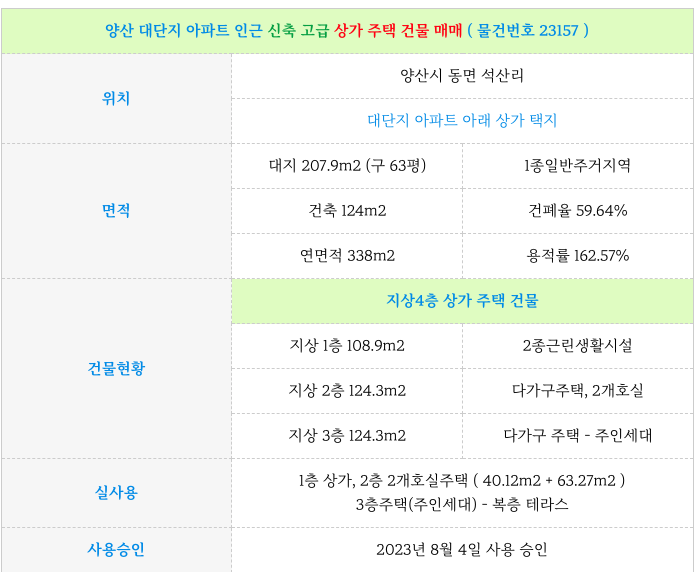 양산 대단지 아파트 인근 신축 고급 상가 주택 건물 매매 물건 소개해 드리겠습니다.
