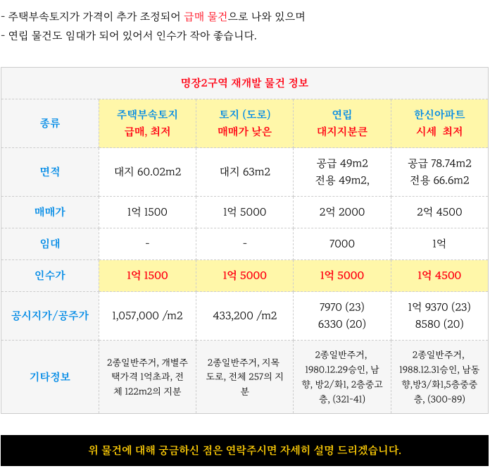 (정비구역고시) 명장2구역 재개발 이후 일정 & 최저 토지, 연립 등 매물
