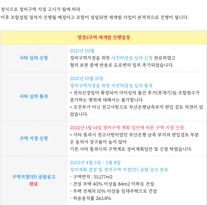 명장2구역 재개발 의 현재까지의 진행상황과 향후 예상 일정을 간략히 정리드립니다.