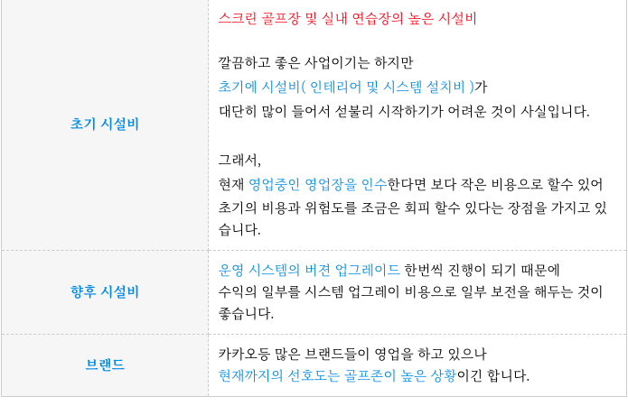 증산의 많은 주거단지의 우수 소비층을 대상으로 하여실내 골프 연습장의 수요는 충분히 있는 곳이며