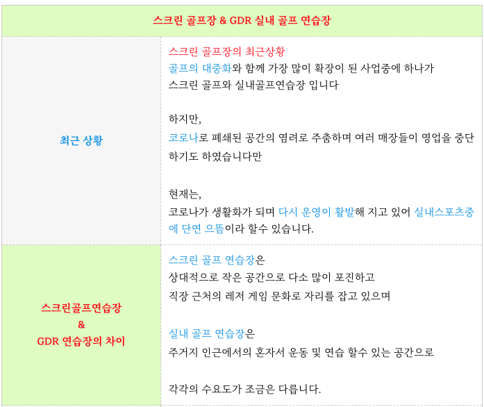 양산 GDR 실내 골프 연습장 최저가 양도 양수 매물