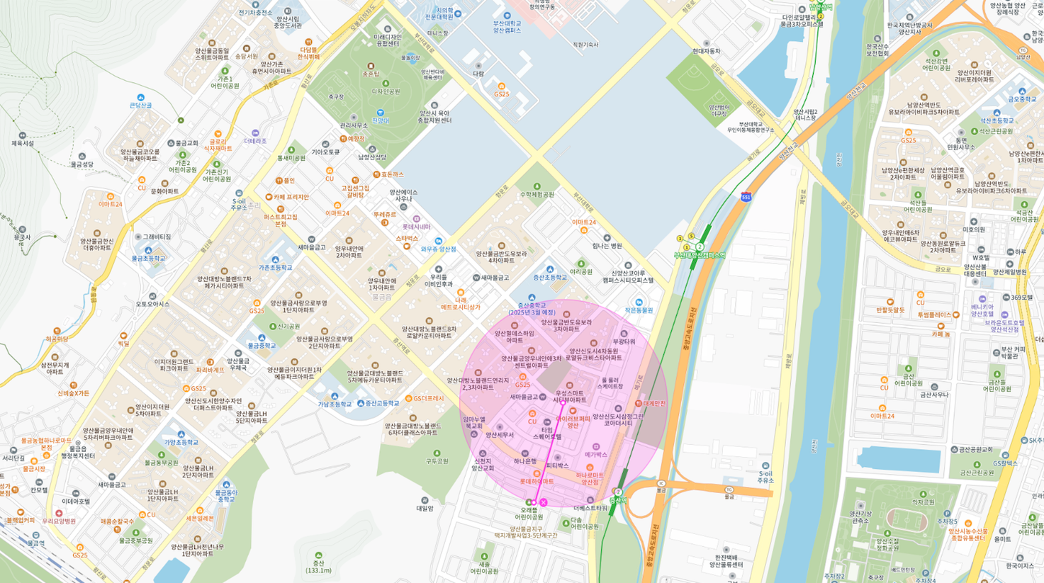 6만여 아파트 단자의 배후 수요가 있는 양산 증산 신도시에 위치하고 있습니다.