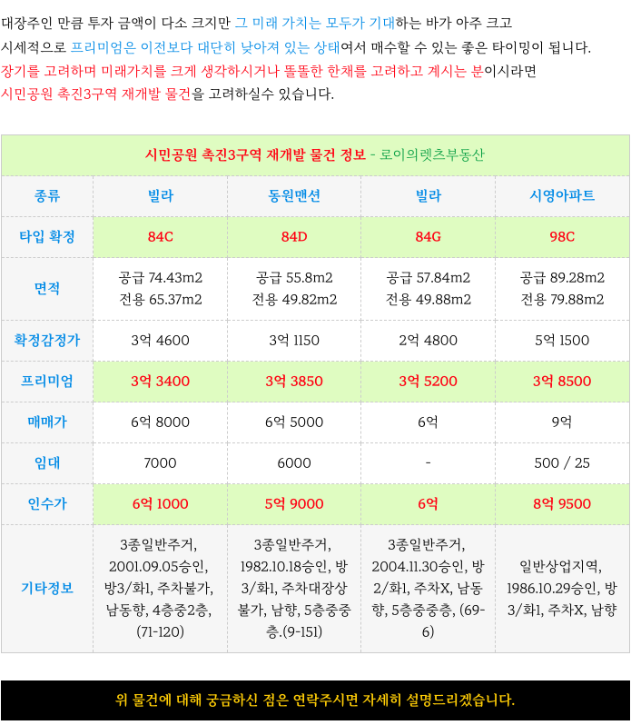 시민공원 촉진3구역 추가적으로 궁금하신 사항은 전화로 문의주시면 자세히 설명드리겠습니다.