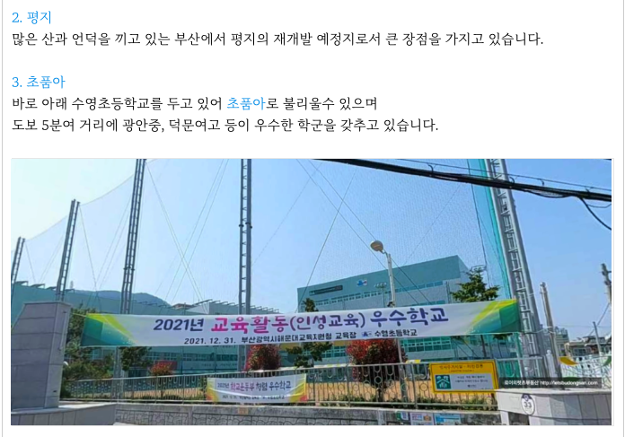 바로 아래 수영초등학교를 두고 있어 초품아로 불리울수 있으며