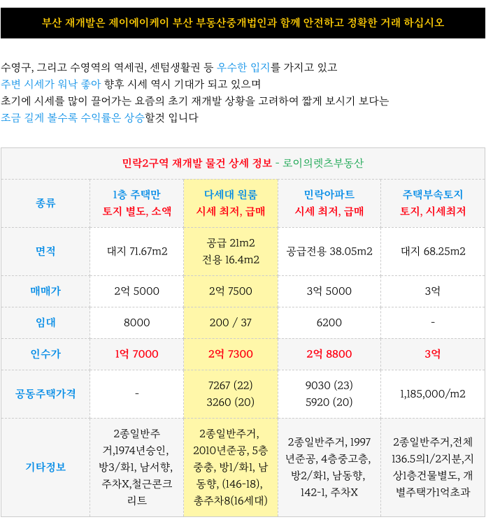 수영구 민락2구역 재개발 현 최저 매물도 소개 드리겠습니다.