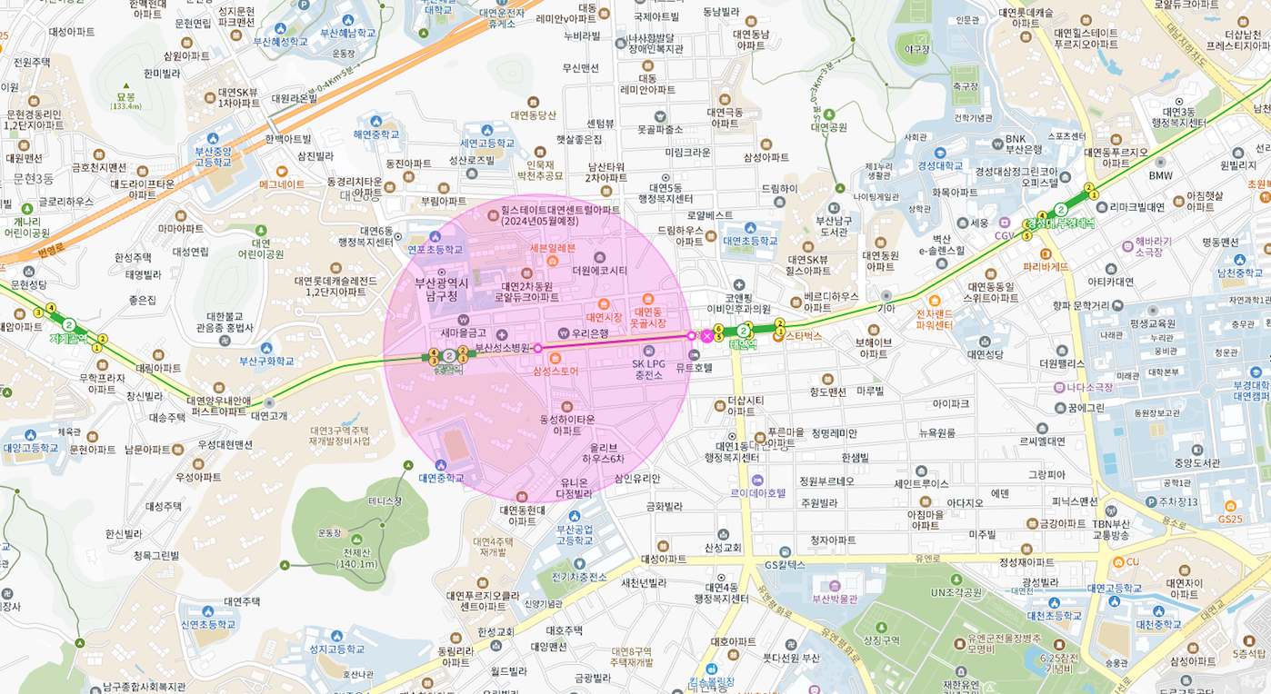 향후 대연3구역 대연디아이엘이 들어서게 되면 정문 출입구를 바라보고 있어