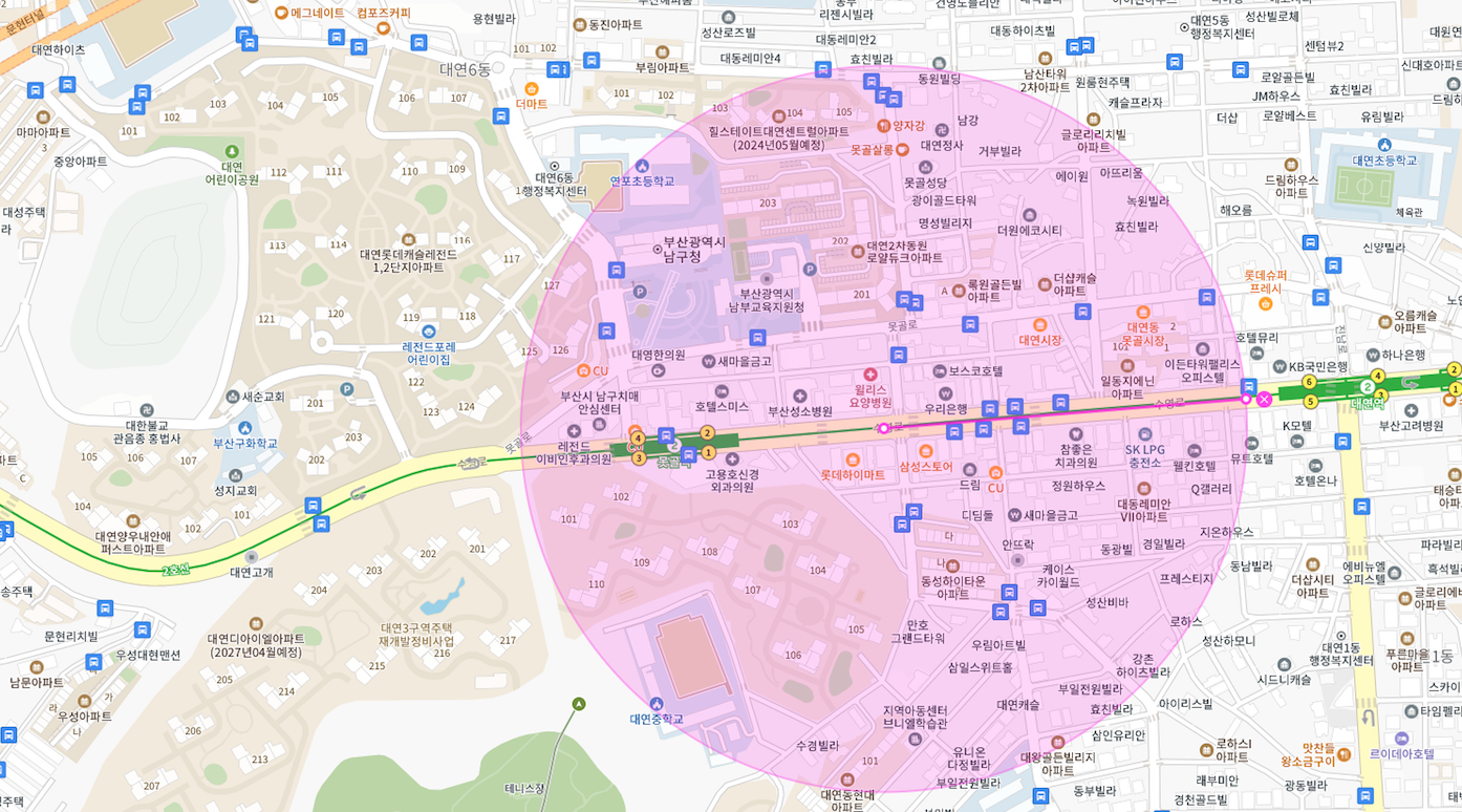 롯데캐슬레전드 (3149세대)와 대연3구역 대연디아이엘(4488세대) 인접의