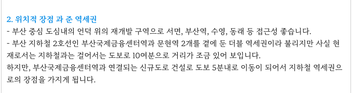 중심부와 상단은 부산 금융센터단지역에서 직선거리는 300여미터밖에 되지 않지만