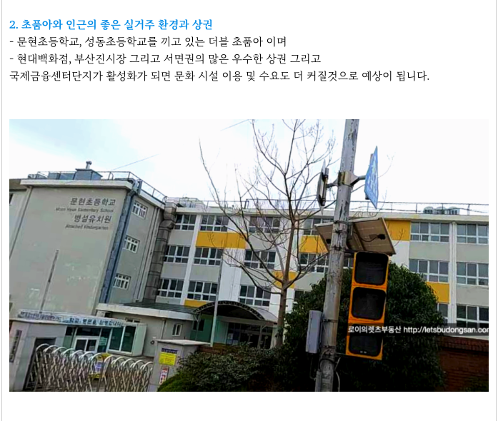 전체 2772(2367)세대의 인근 최대 단지이고, 문현초등학교를 끼고 있는 초품아 이며