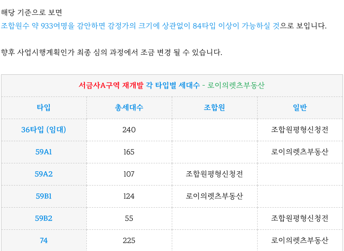 서금사A구역의 조합원 배치 부분 설명 드립니다.