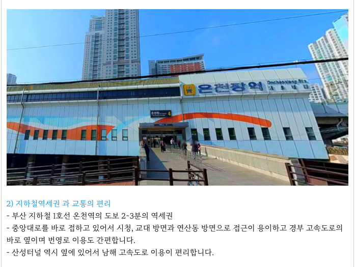 부산 핵심 지하철1호선 역세권 + 평지 + 온천천 을 앞에 끼고