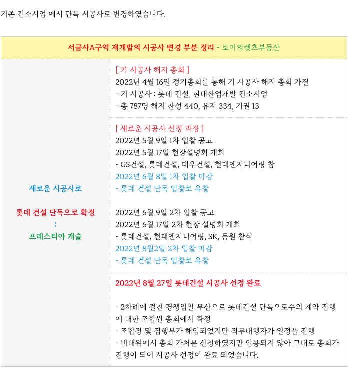 참고) 단독 1군 시공사 변경 내용