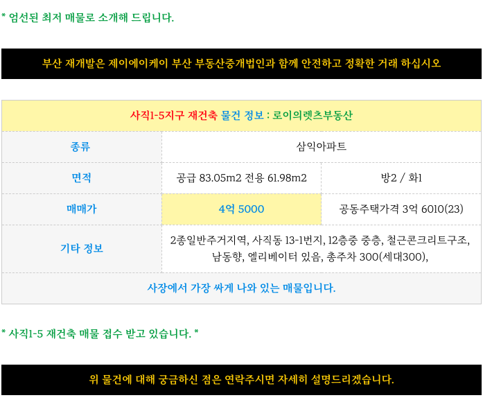 안녕하세요. 로이의렛츠부동산 입니다. 제이에이케이 부산 부동산중개법인은 언제나 신뢰있고 정직하게 좋...