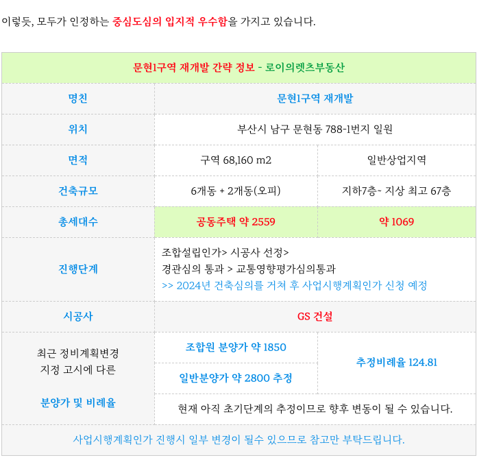 문현1구역 재개발 의 간략한 특징을 다시 한번 정리해 드리겠습니다.