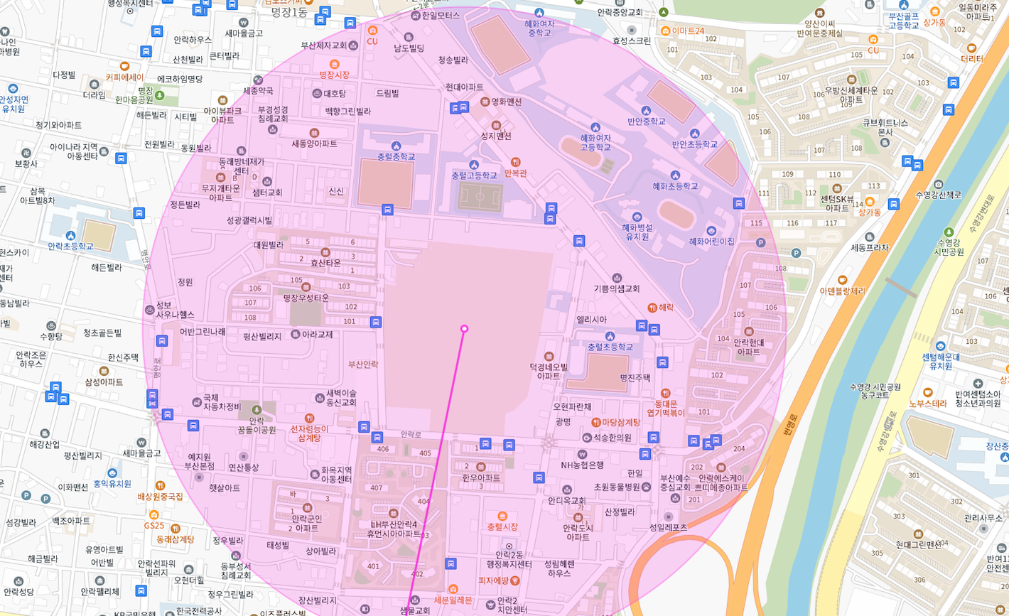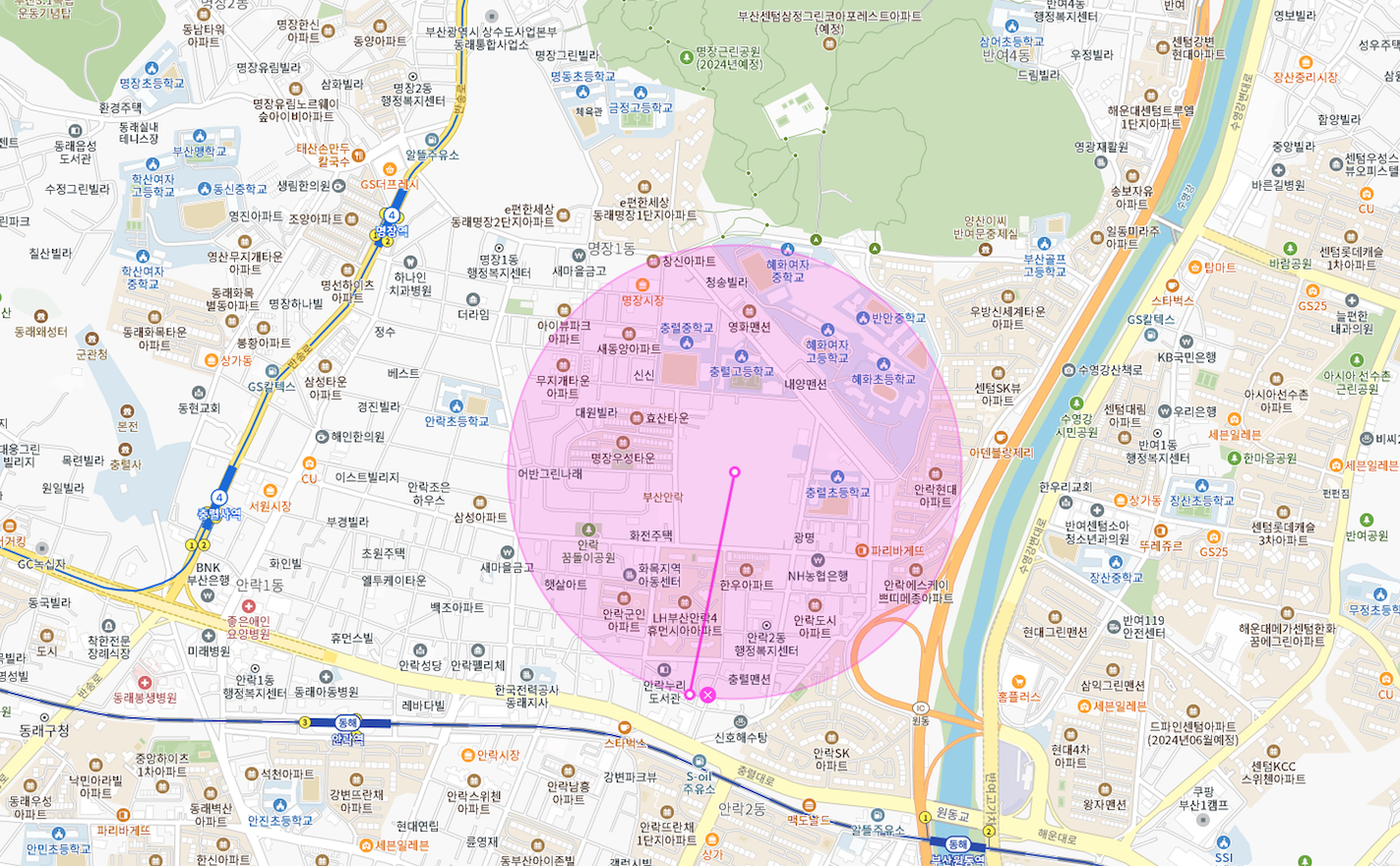 안락동 + 명장동 충렬고등학교 주변을 간략히 먼저 체크해 보겠습니다.