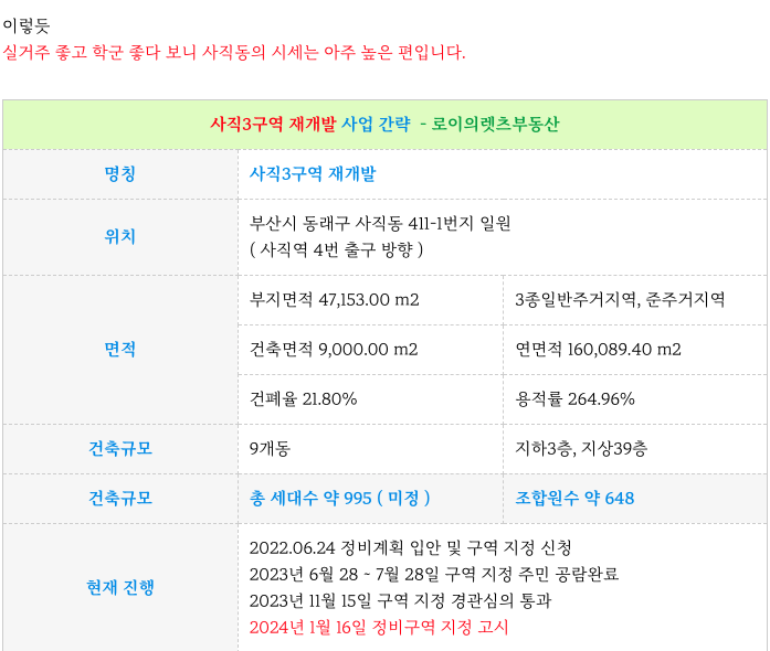 역세권 사직3구역 재개발 구역 지정소식 & 급 매물 소개 해 드리겠습니다.