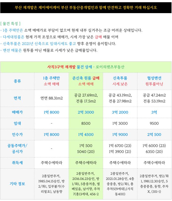 사직3구역 재개발 급매 소액 매물 소개해 드리겠습니다.