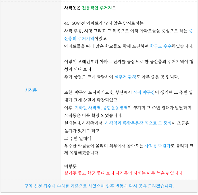 - 사직동, 초역세권, 우수 학군, 실거주 우수, 시세 좋은