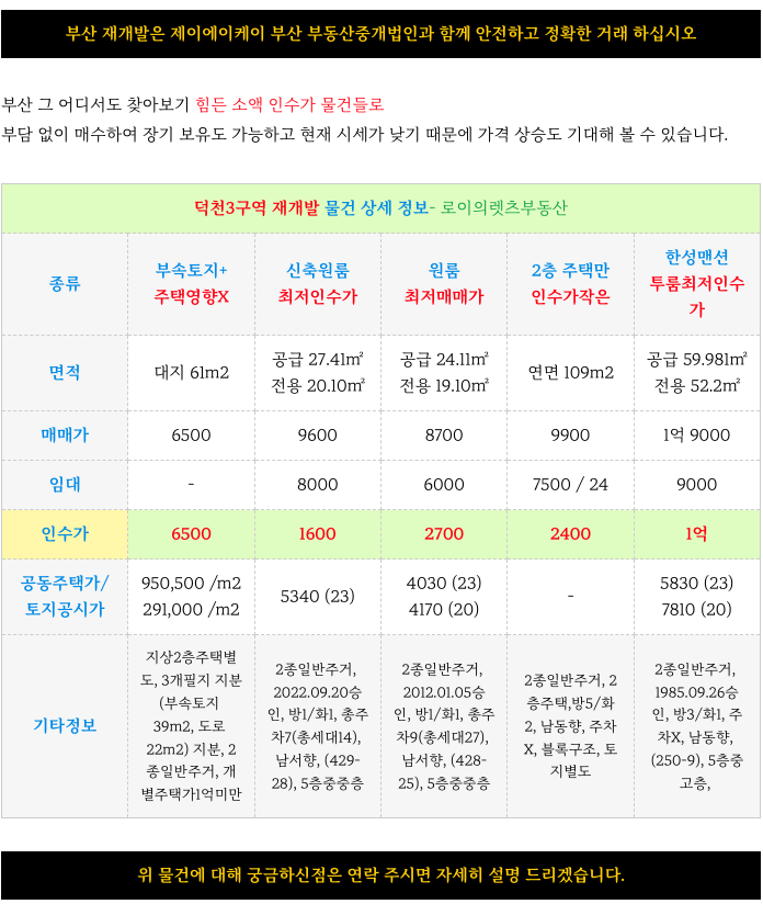 사타통과한 - 덕천3구역 재개발 초소액 인수 매물 (숙등역)
