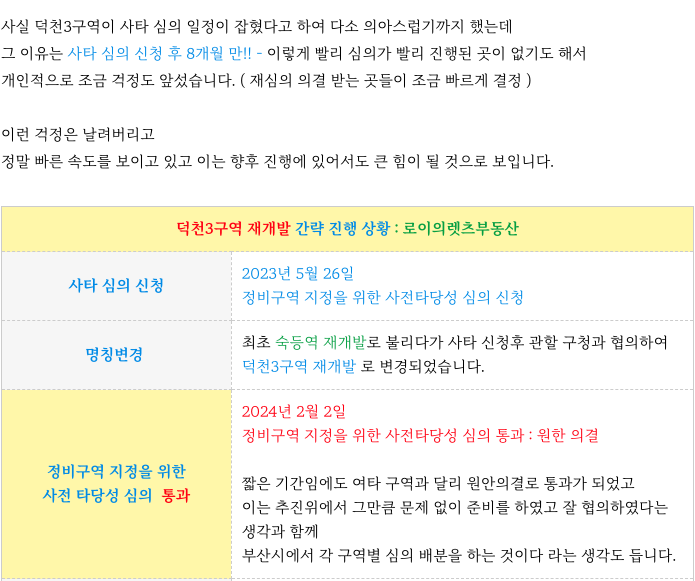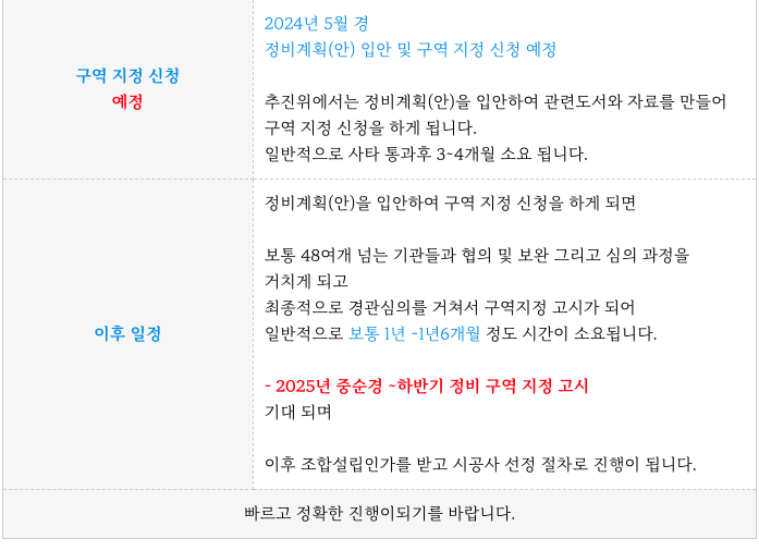 2024년 2월 2일 정비구역 지정을 위한 사전타당성 검토 심의가 조건부도 아니고 원안의결 통과하였습니다.